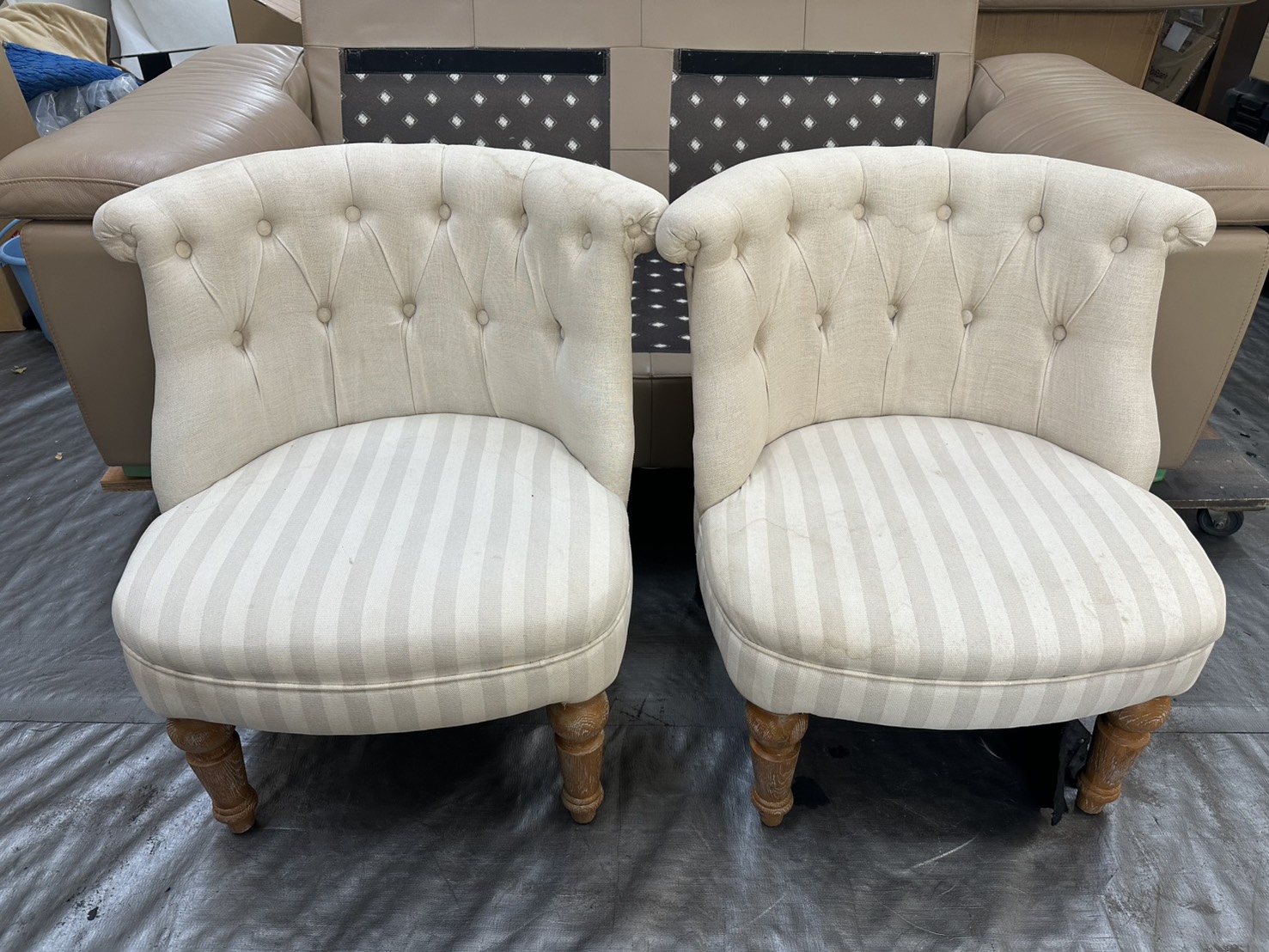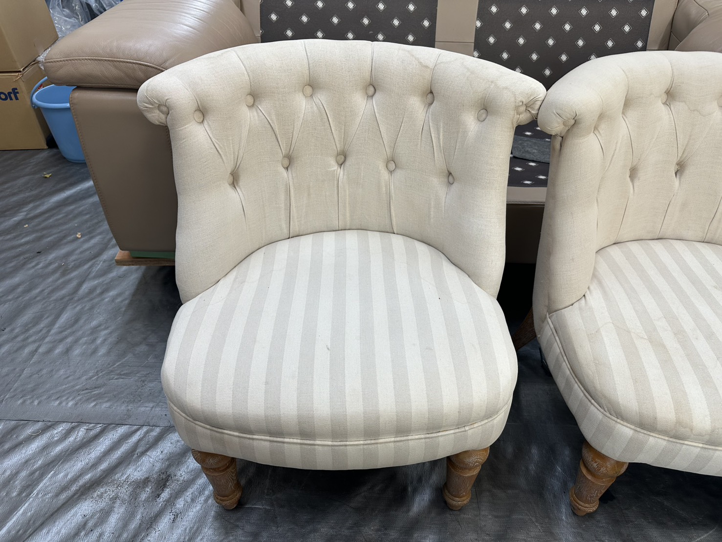 少しわかりにくいですが、ファブリックソファーなので座面などは染みがあります。