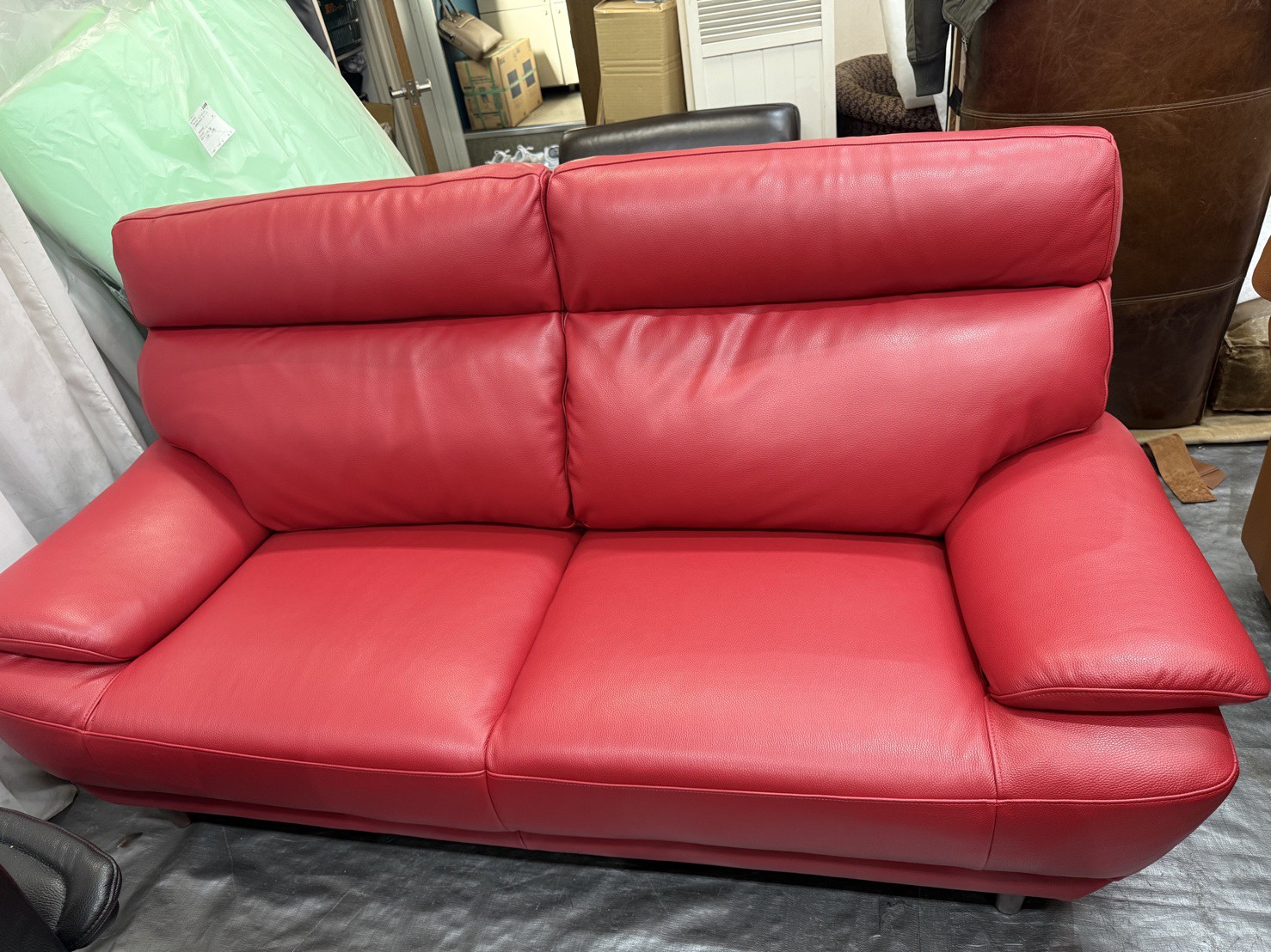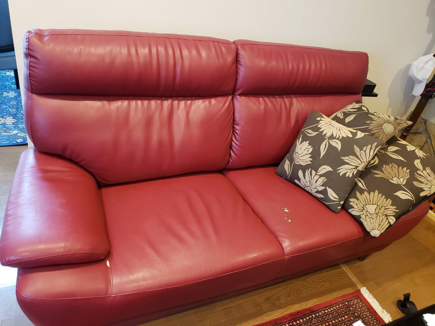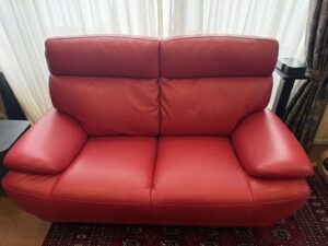 今回は合皮のソファーを鮮やかな赤の本革に張り替えます。
