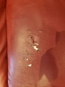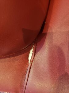 よく見ると部分的にあちこち劣化しています。今回はイタリアンレザーで張り替えです。