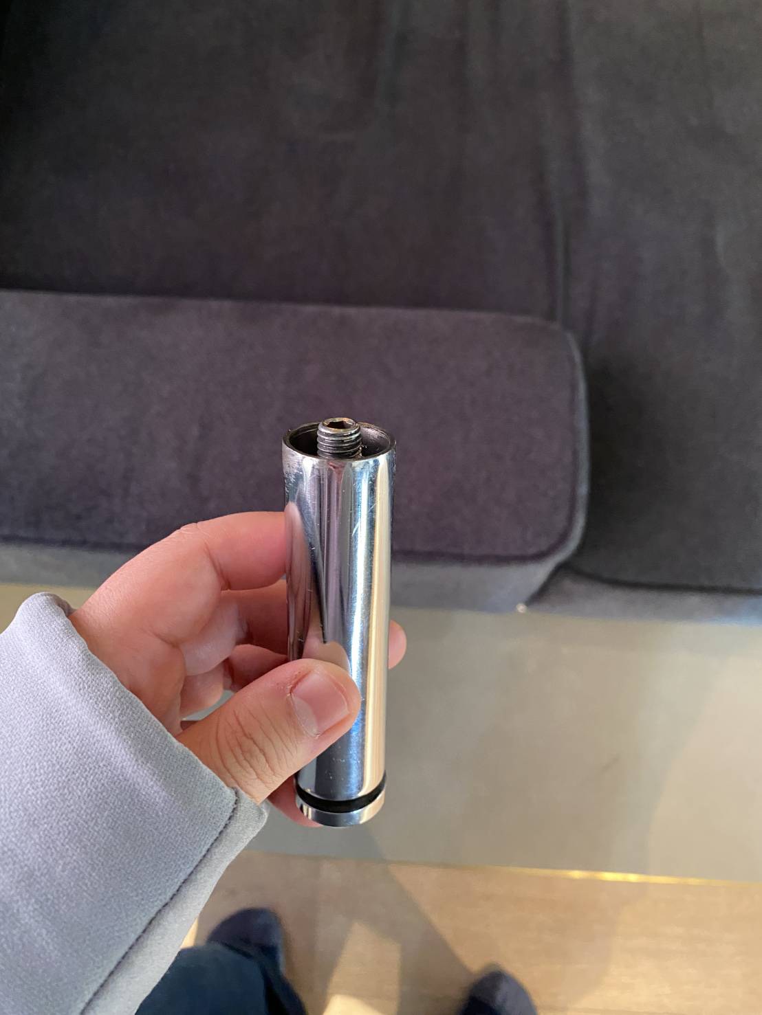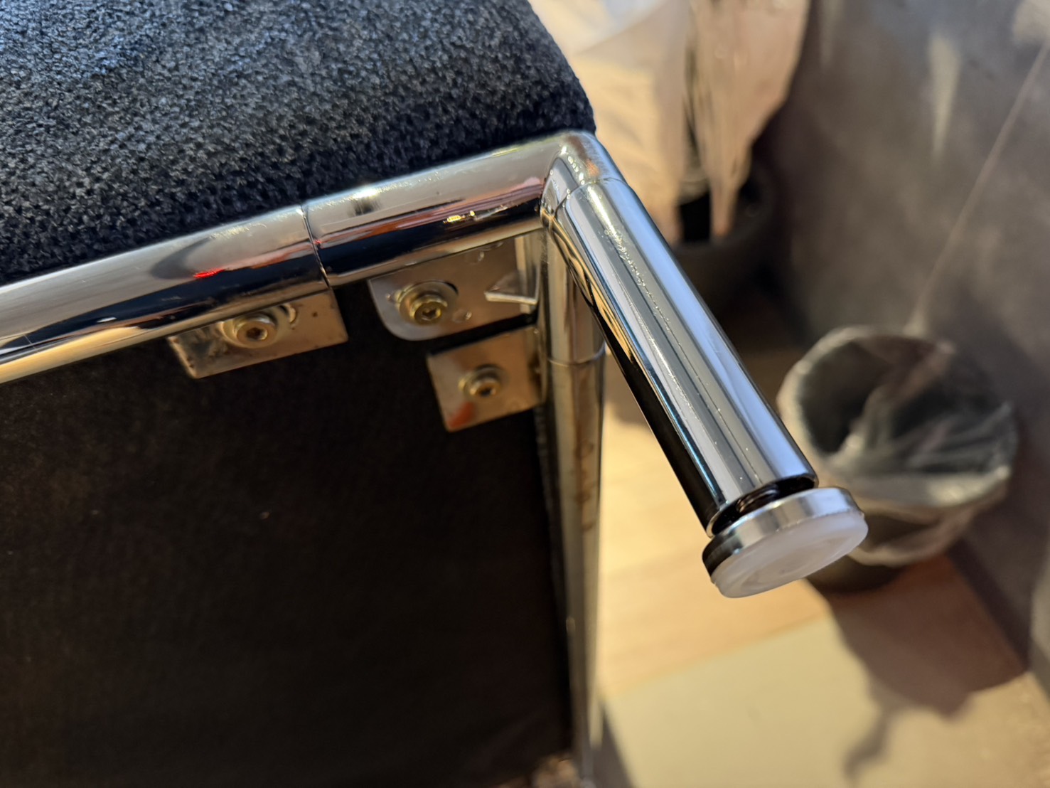 今回はソファーの金属脚のネジ部分が緩んでしまって締まらないので修理してほしいとのご依頼です。