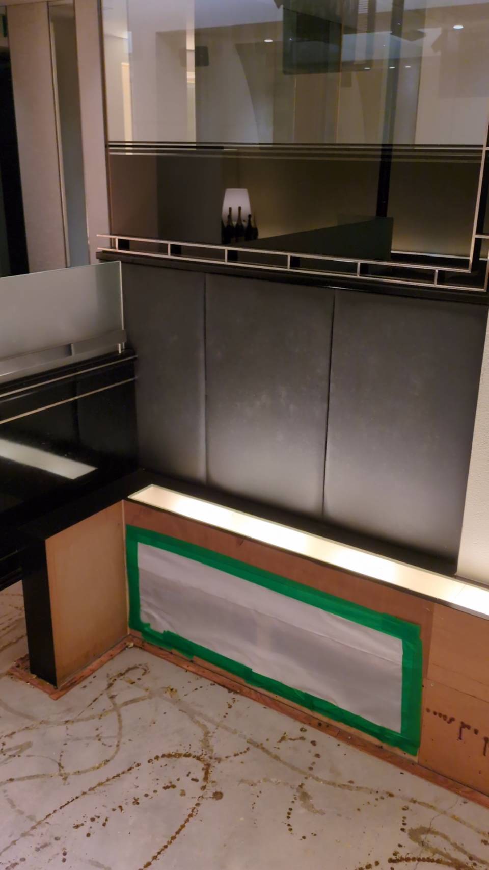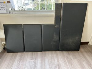 店舗のリフォームで今まで黒だった壁面を今回は白に張り替えます。