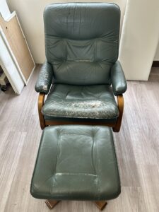 一人掛けのリクライニングチェアと2人掛けのソファーをイタリアンレザーで張替えの